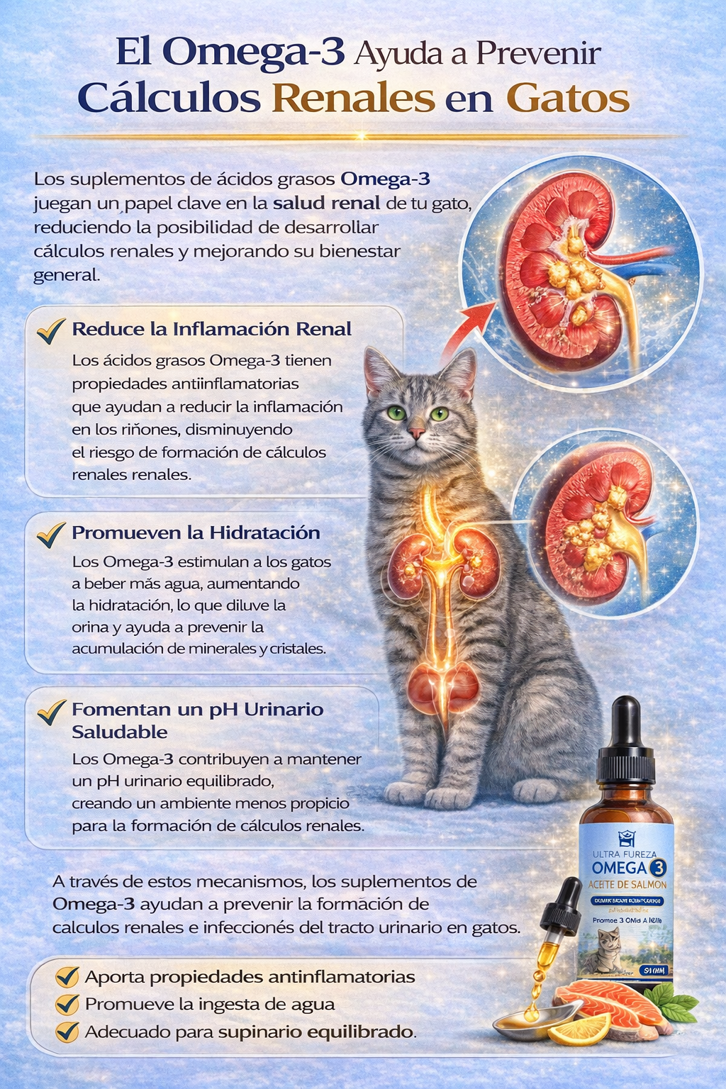 El aceite de salmón de alta calidad favorece una digestión eficiente y una mejor absorción de los nutrientes esenciales.